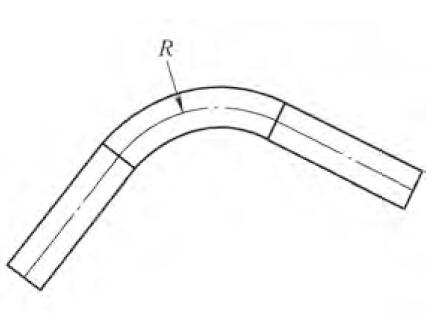 汽車管路不可避免地會遇到很多彎角,管路彎角的設計要靈活合理。既要保證產品的可制造性也要盡可能滿足管路布置的需求。汽車尼龍管的設計由于工藝限制,需使用直線加彎角的形式呈現(xiàn),不可以使用樣條曲線制作數據。尼龍管的彎角半徑R是彎角的關鍵參數,如圖2所示。